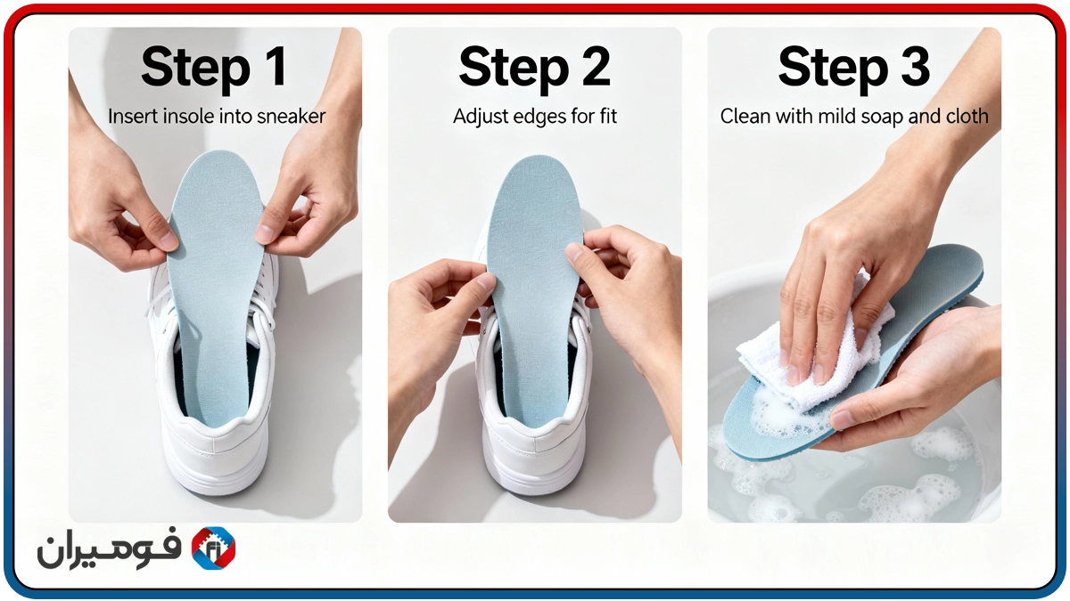 In today’s active world, choosing the right shoe insole is not just a comfort decision, but a medical and functional necessity for maintaining foot, knee, and back health. A suitable insole with an ergonomic foam structure made of standard recycled EVA materials and supportive layers provides shock absorption, arch support, and balanced weight distribution to both upgrade ordinary shoes and relieve users from chronic pains like plantar fasciitis or lumbar disc pressure. If you use Foamiran foam insoles alongside this product, with a variety of models and custom sizes, precise support for your foot structure will be guaranteed. These insoles not only increase shoe life but also improve sports performance by reducing vibrations and preventing injuries caused by running or prolonged standing. In fact, orthopedic specialists recommend that you check and replace shoe insoles at least every six months to maintain the body’s biomechanical balance.