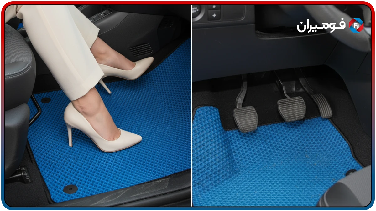 Pay attention to thickness and 3D design (3D Fit) as well, as this feature ensures that the foam floor mat fits the car floor completely and leaves no gaps. If you are a traveler or drive in humid or muddy areas, waterproof EVA floor mats with high edges and basin-style designs are the best option for you.